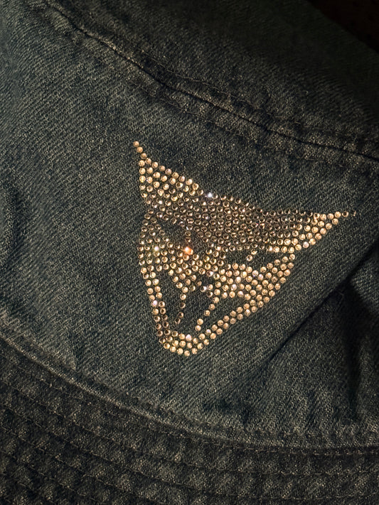blue denim y2k bedazzle clear gem cat head bucket hat