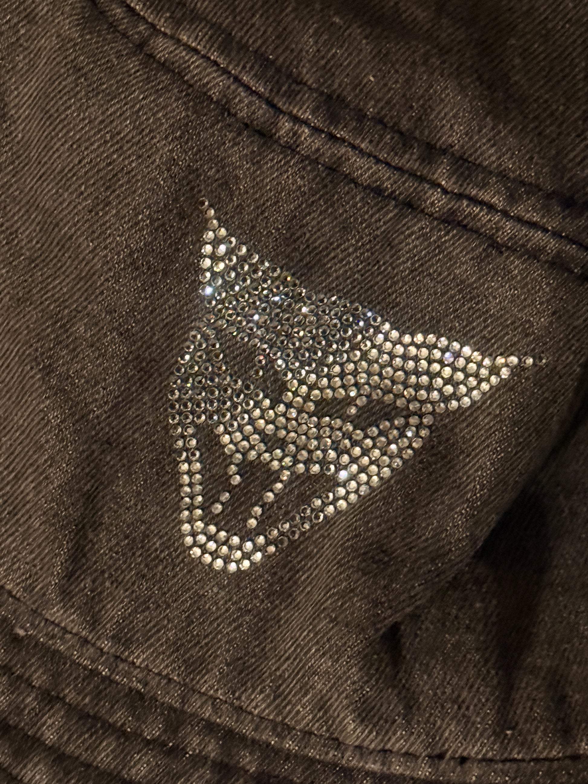 Faded vintage black y2k bedazzle clear gem cat head bucket hat