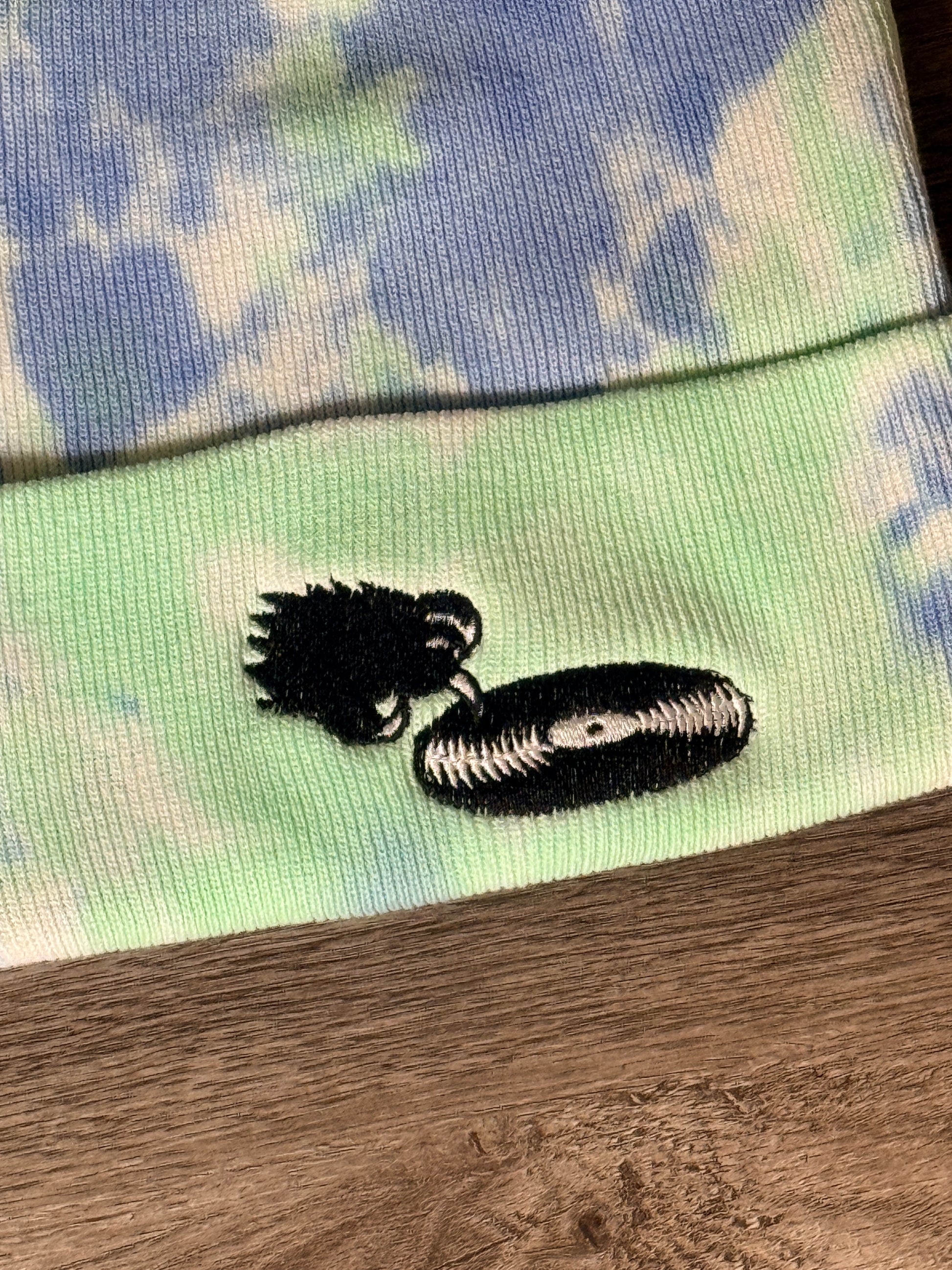 Light blue green pastel tie-dye WLDCT x Luke Thomas record scratch Embroidery Beanie